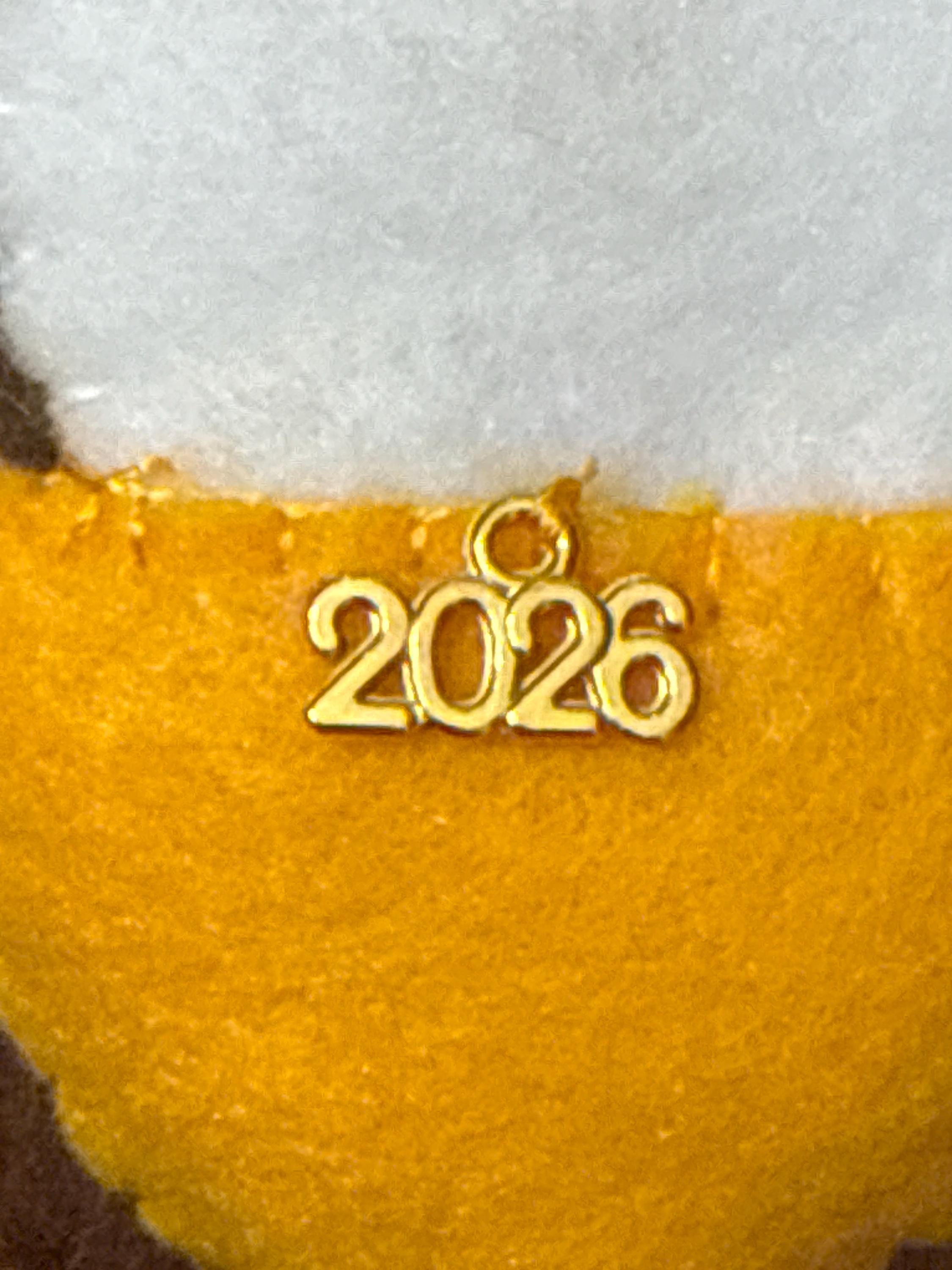 Customize the back of it with the name and year you would like. It is handmade by me using felt, a gold colored year charm and small beads. The name is added using gold, iron on vinyl. Please write in the notes what name you would like on the Host and the year you would like.