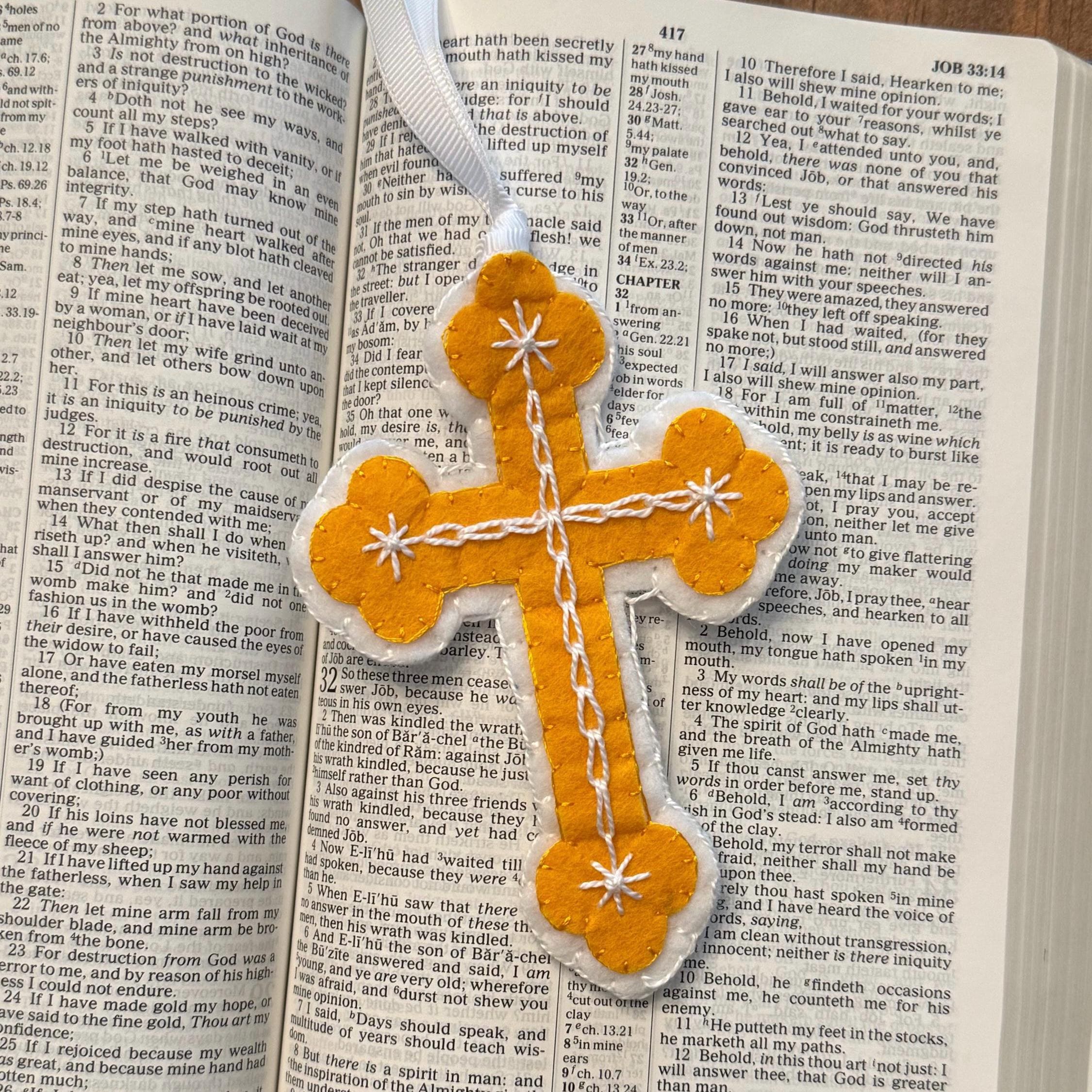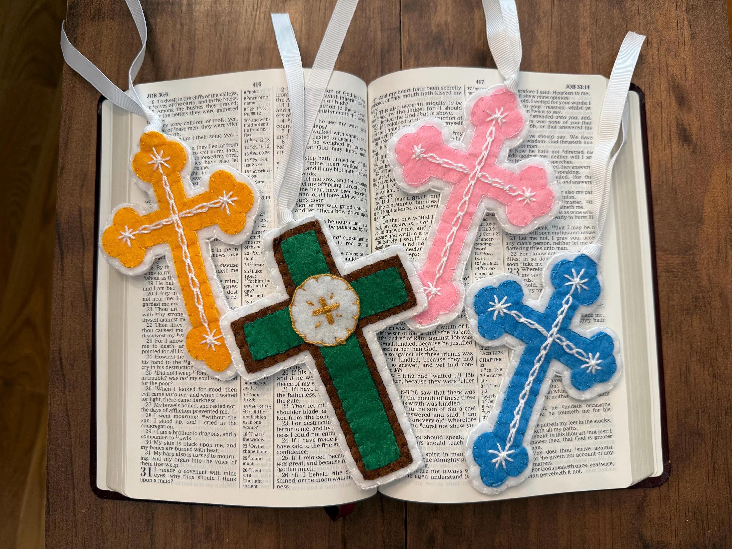 A beautiful, meaningful way to mark a place in a Bible or favorite book. These hand-stitched felt cross bookmarks are the perfect keepsake for celebrating a spiritual milestone or giving a thoughtful "just because" gift.